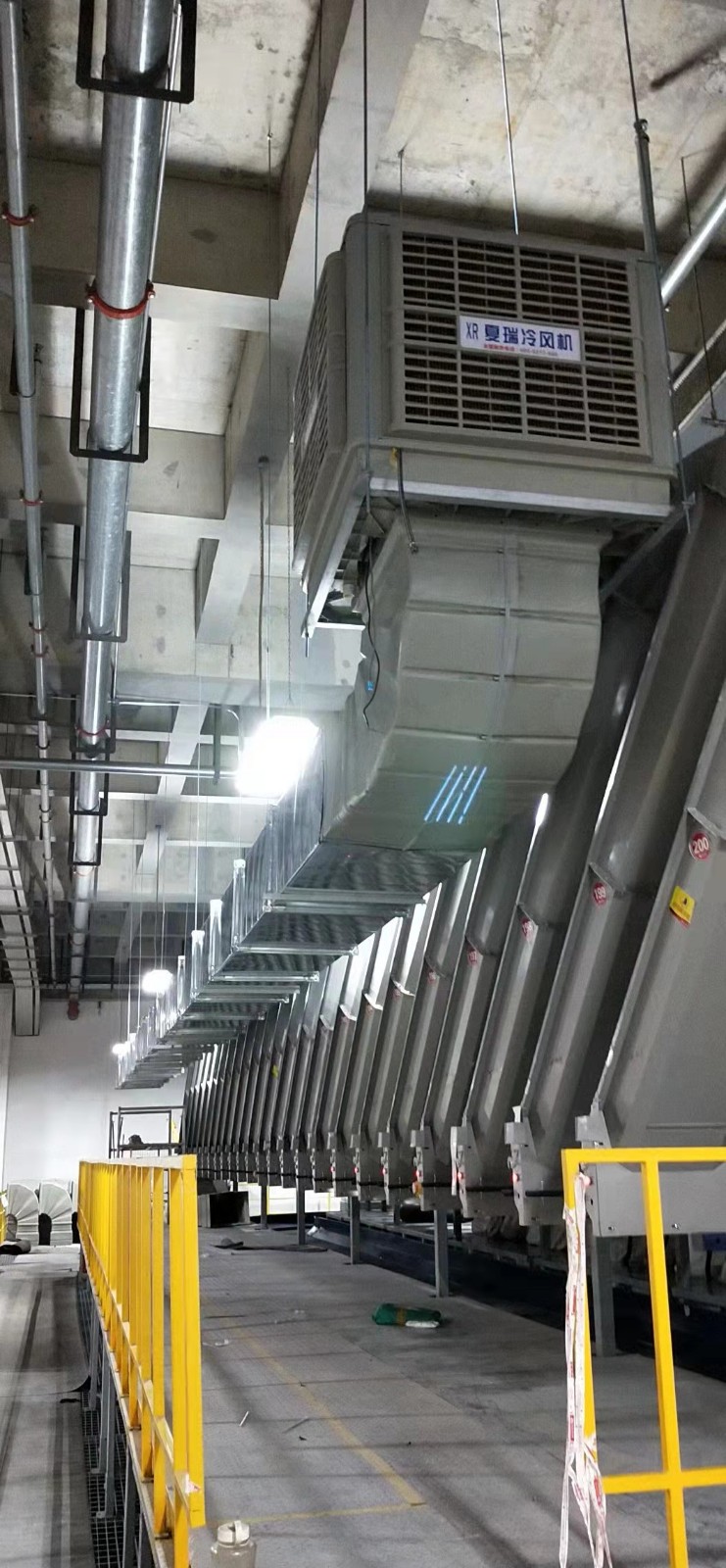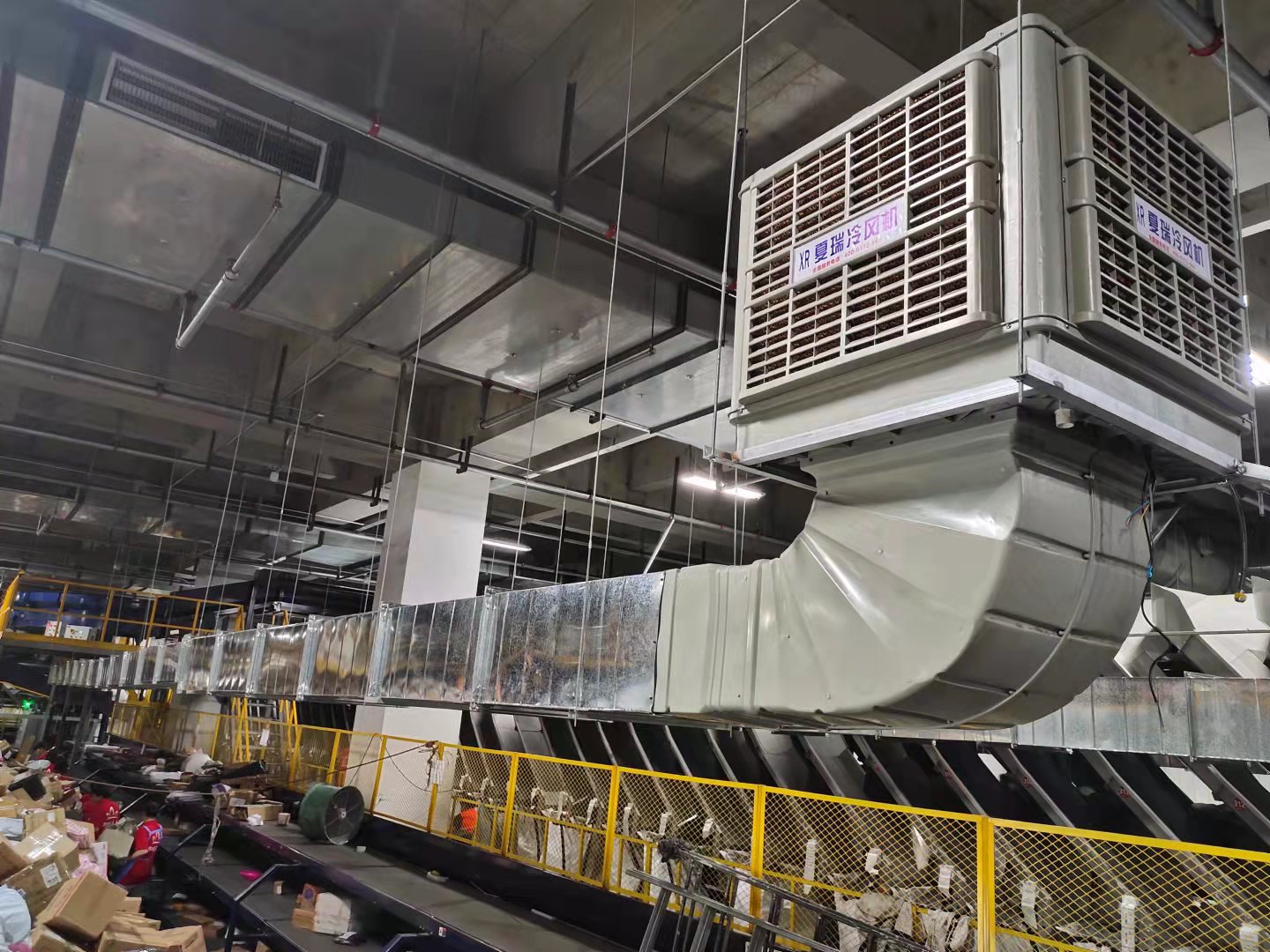 鄭州百世快遞運(yùn)轉(zhuǎn)中心為于中牟普洛斯物流園,一期和二期面積一共有8萬平方目前冷風(fēng)系統(tǒng)和大吊扇已經(jīng)交付使用,效果達(dá)到了客戶的滿意。